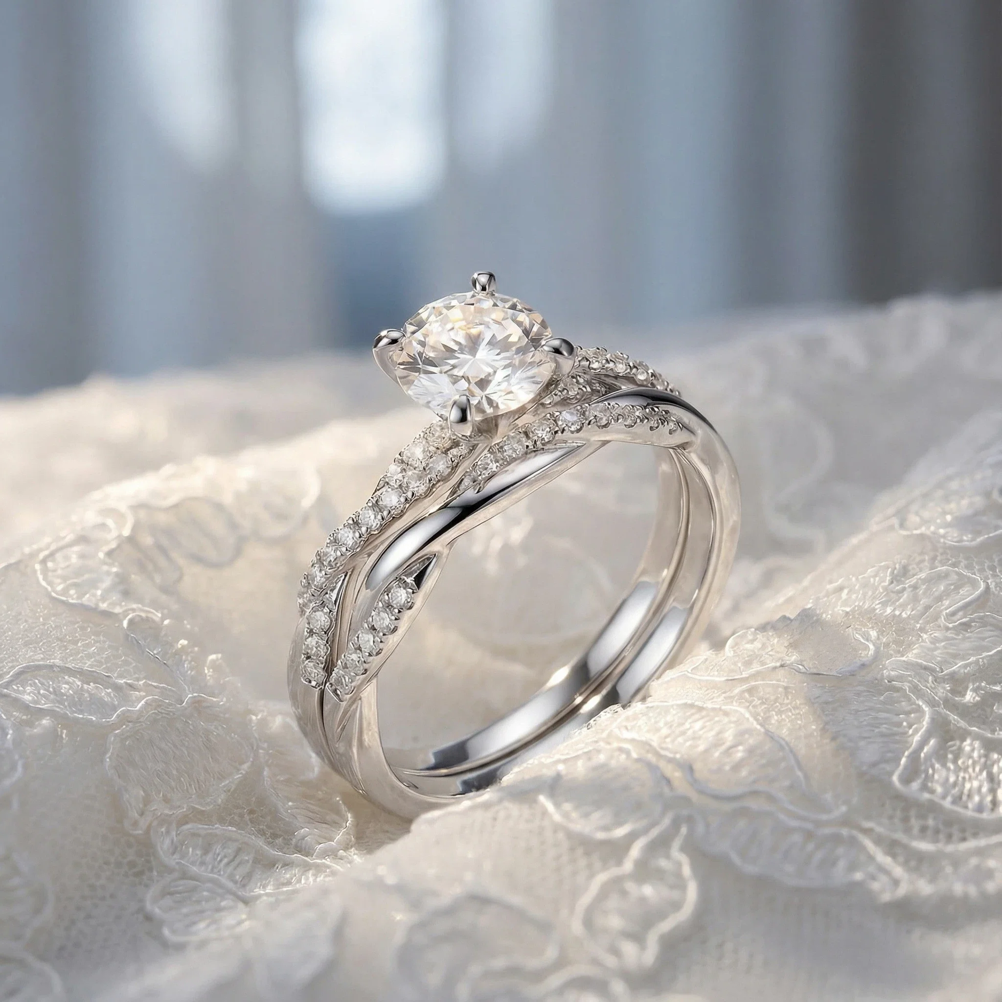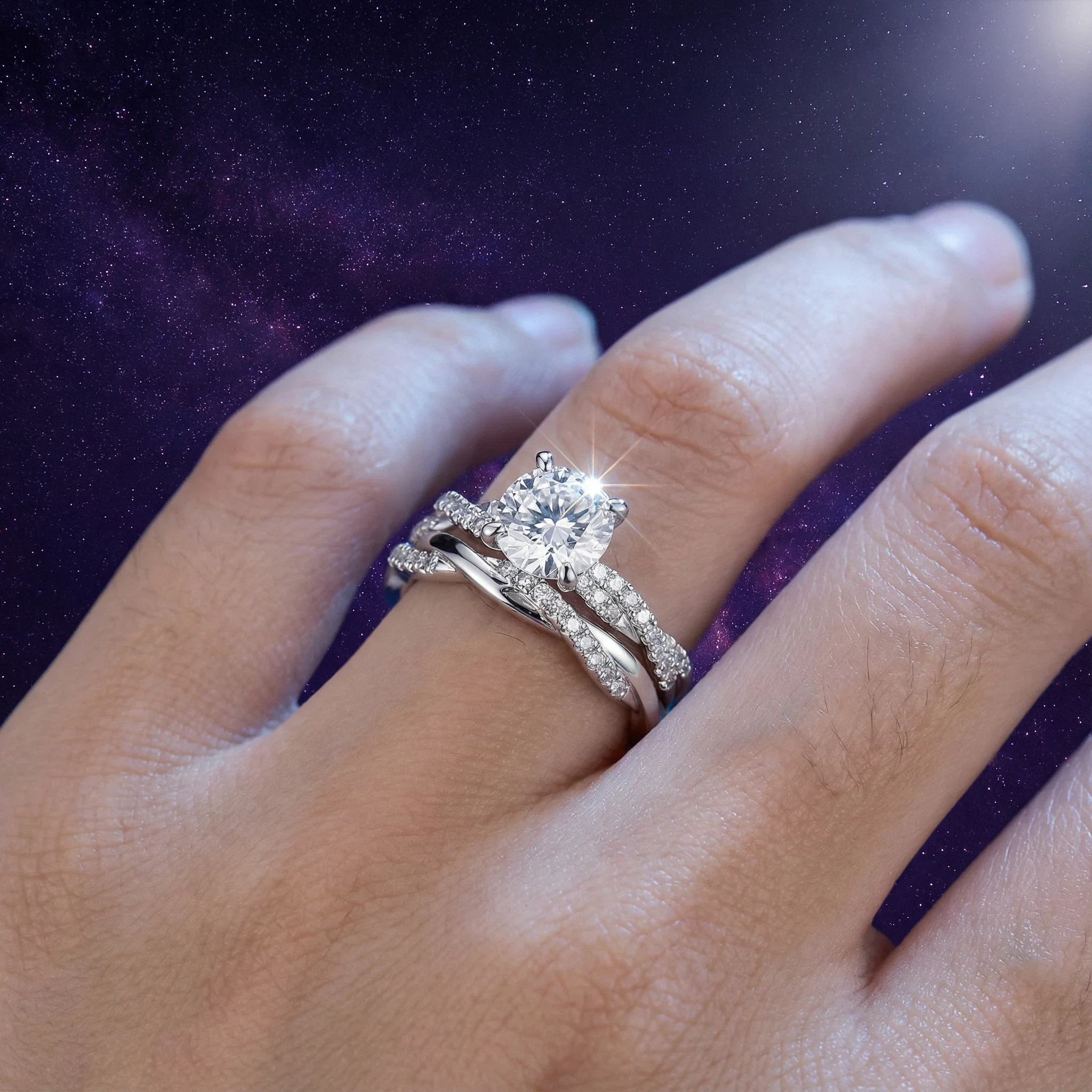 Women Men Fine Jewelry S925 Sterling Silver Platinum Plated Prong Setting GRA Certified Rings Set Elegant Sparkling Moissanite